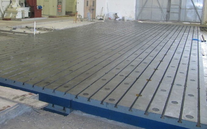 我公司為青島天藍(lán)化工廠設(shè)計(jì)制造的1500×3000mm焊接平臺(tái)8塊產(chǎn)品生產(chǎn)現(xiàn)場(chǎng),焊接平板(焊接平臺(tái))用于鉚焊工藝的基礎(chǔ)平板,工作面上有孔和T型槽,孔主要用來(lái)清理鉚焊時(shí)的一些鐵渣和焊接廢棄物,T型槽主要是用來(lái)固定焊接件。當(dāng)然,焊接平板也有用平面的,即無(wú)孔無(wú)槽。