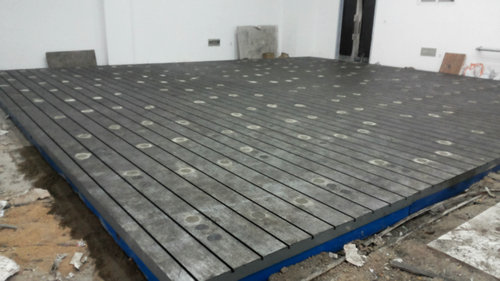 為沈陽客戶生產(chǎn)的設備運行試驗平臺,T型槽平臺,有2000*4000mmT型槽平臺拼接組成.采用頂絲和地腳螺栓的調(diào)整固定方式.